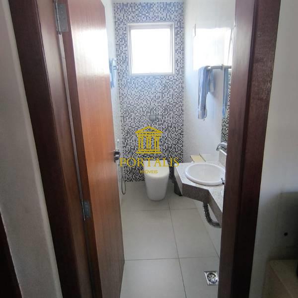 Sala com piso em porcelanato e lavabo com excelente acabamento.